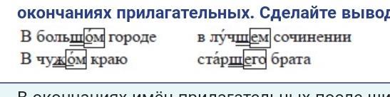 Вспомните правописание гласных О и Е после шипящих в окончаниях имён существительных. Понаблюдайте за правописанием этих глас- ных после шипящих в окончаниях прилагательных. Сделайте вывод.