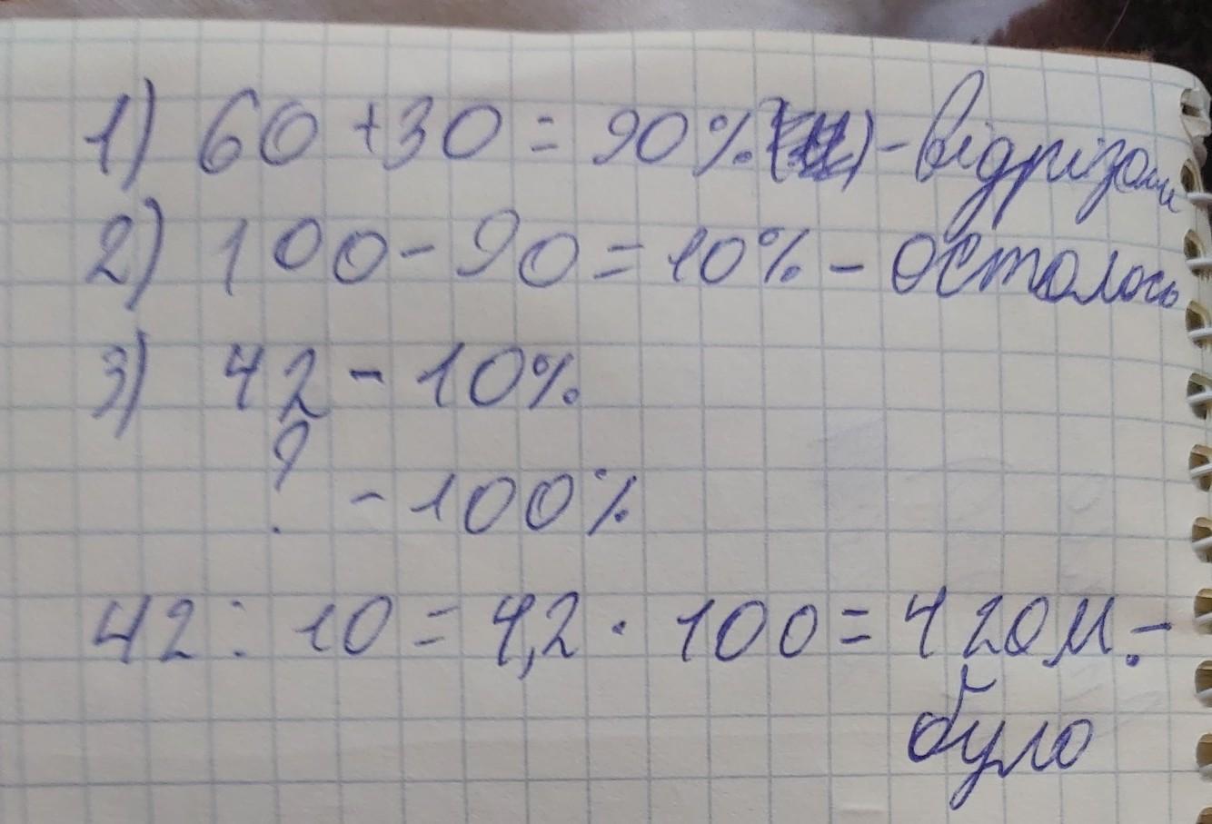 От мотка провода отрезали сначала 30% а затем ещё 60% остатка. После этого в матке осталась осталась 42метра провода. Сколько метров провода было первоначально
