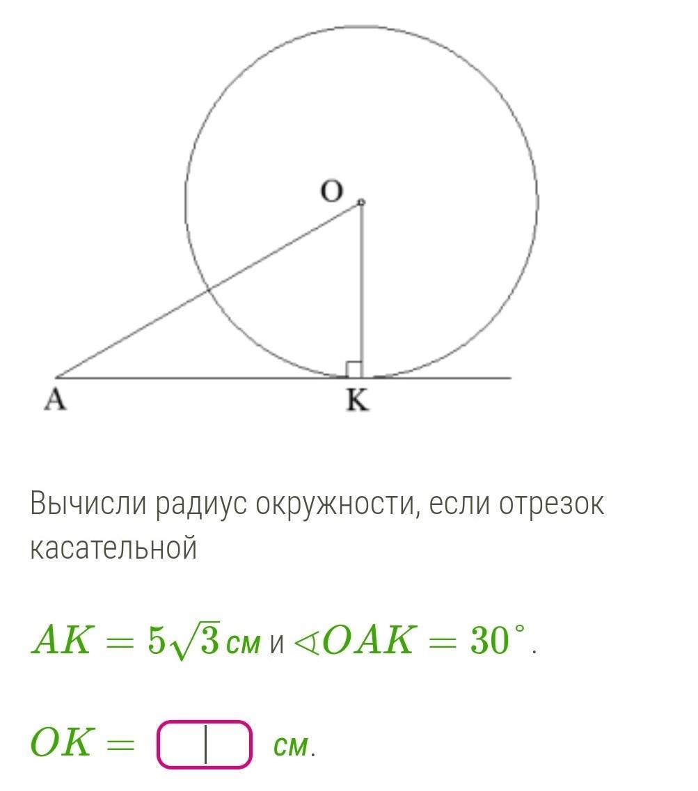 Катет, лежащий против угла 30° равен половине гипотенузы. OK=x, AO=2x. Далее теорему Пифагора