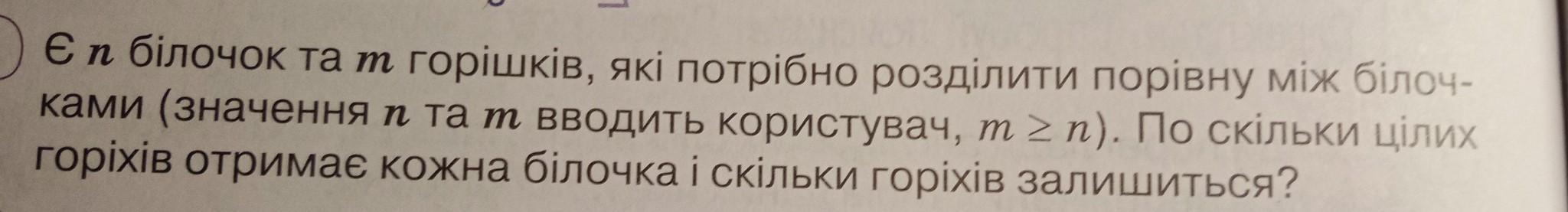 print(f'Кожна білка отримає по {n//m} горіхів')