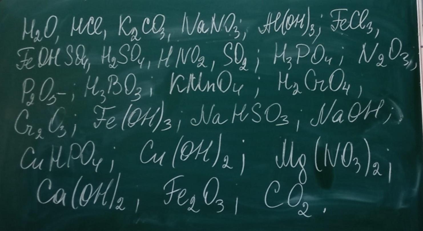 Оксиды: H2O, SO2, N2O3, P2O5, Cr2O3, Fe2O3, CO2.