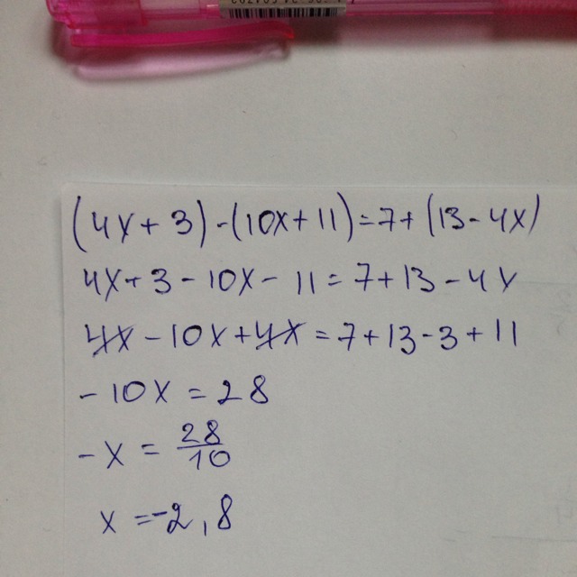 4х+3-10х-11=7+13-4х 4х-10х+4х=7+13-3+11 -2х=28 -х=14 Х=-14