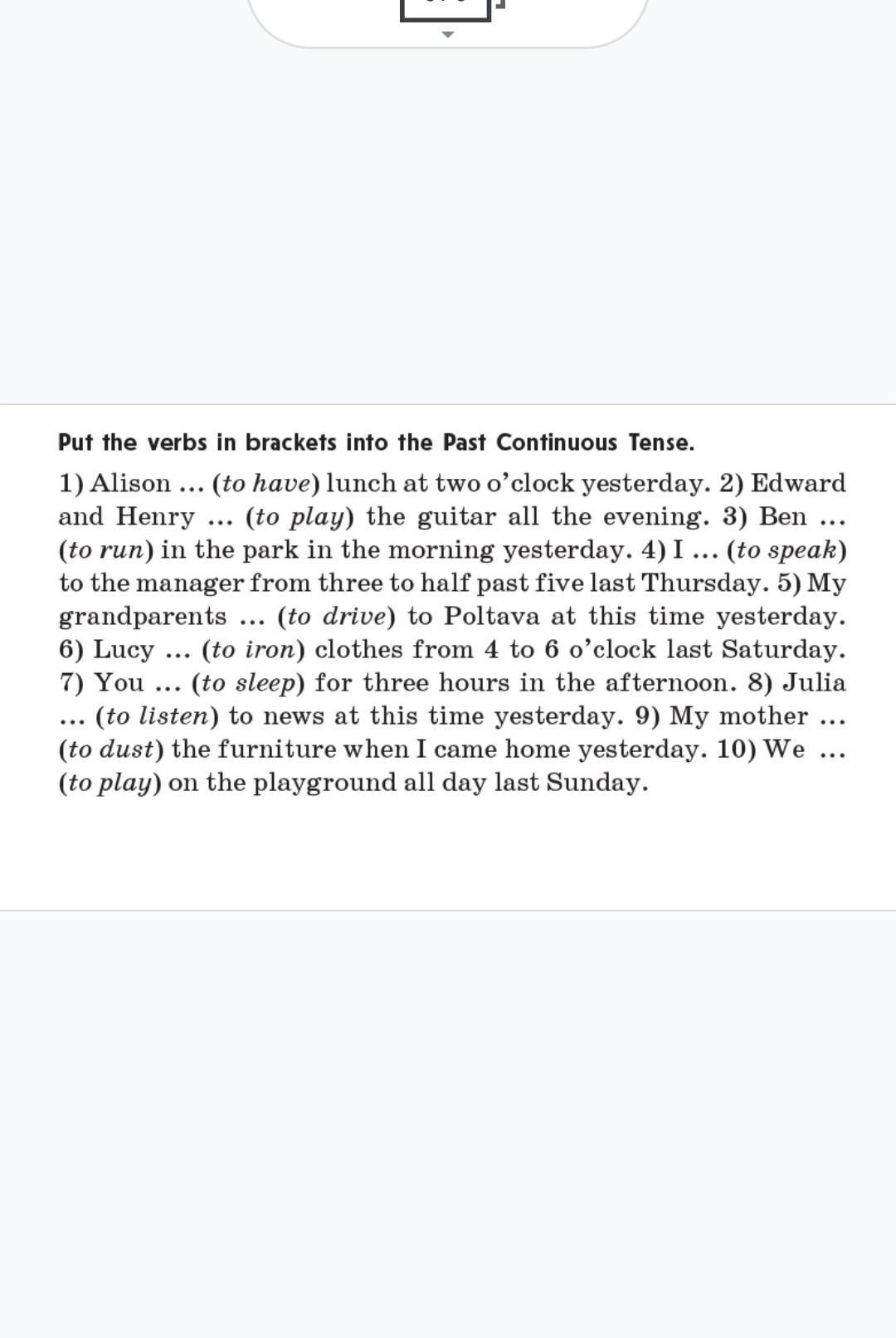 6. Lucy was ironing ...