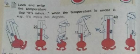 Look and write the temperature Use it's minus... when temperature is under 0 e.g. It's minus the degress