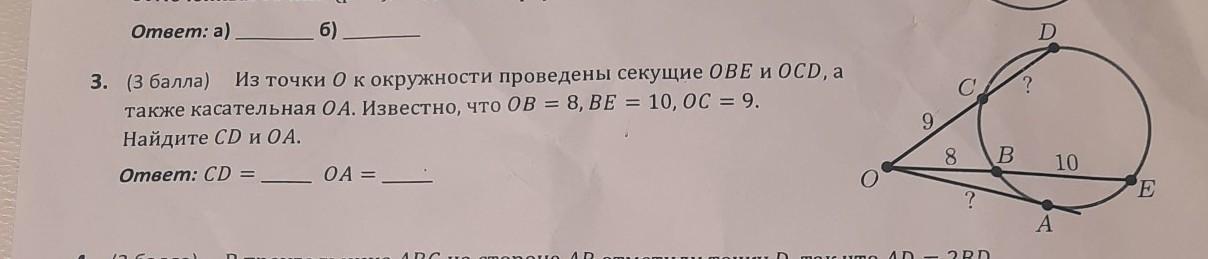 Это задача на степень точки. Произведение отрезков секущих равны квадрату касательной.