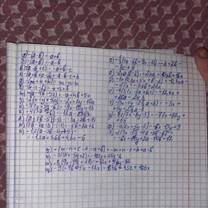 Ж) -(a - 4b - 5c) = -a + 4b + 5c