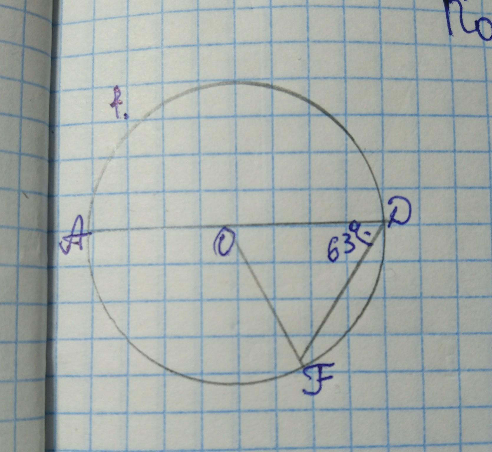 ∠FОД=180°-∠ОDF-∠OFД=180-63-63=54°