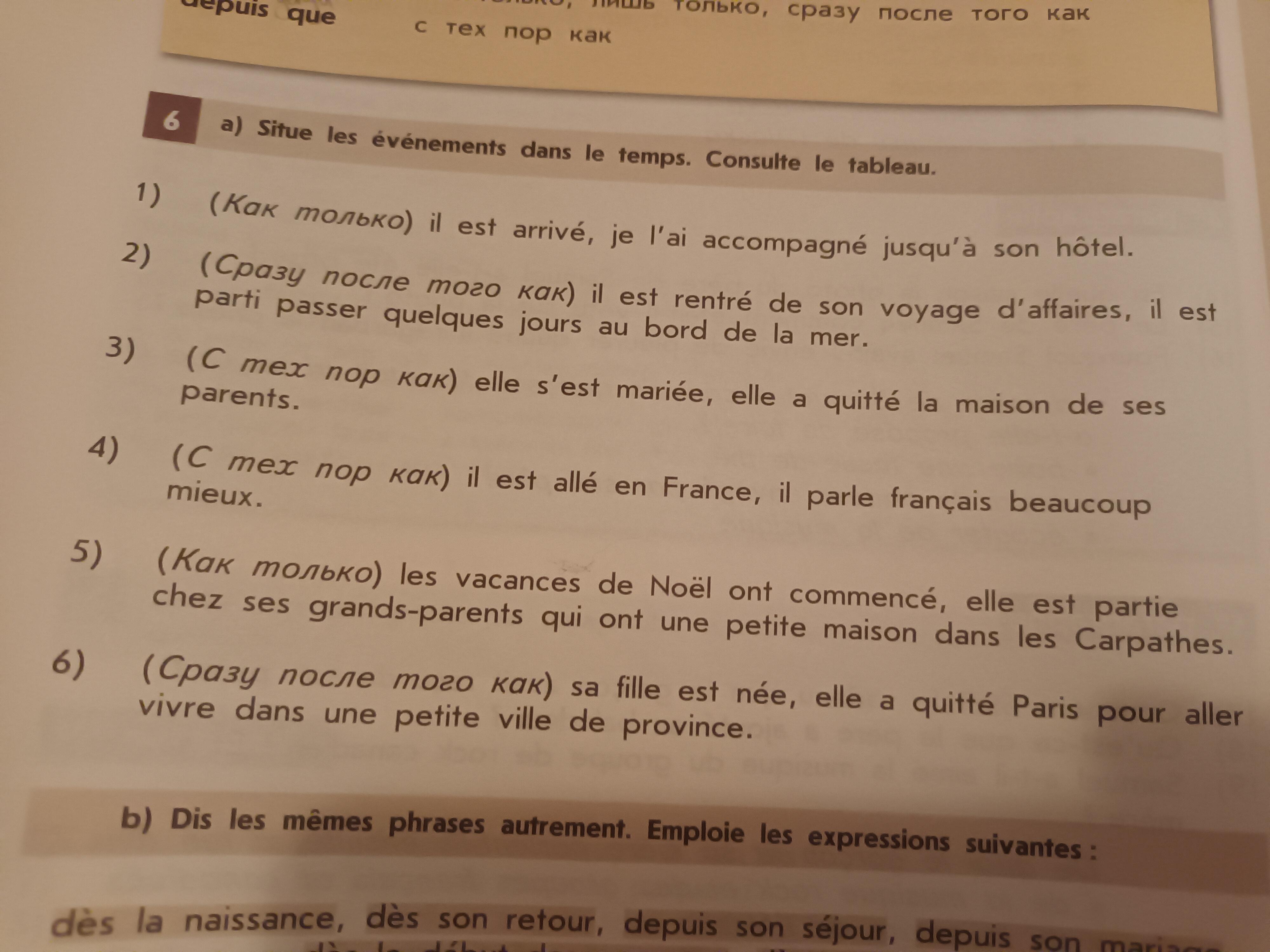 там все ответы в таблице сверху ну к примеру в 4 depuis que будет и так далее