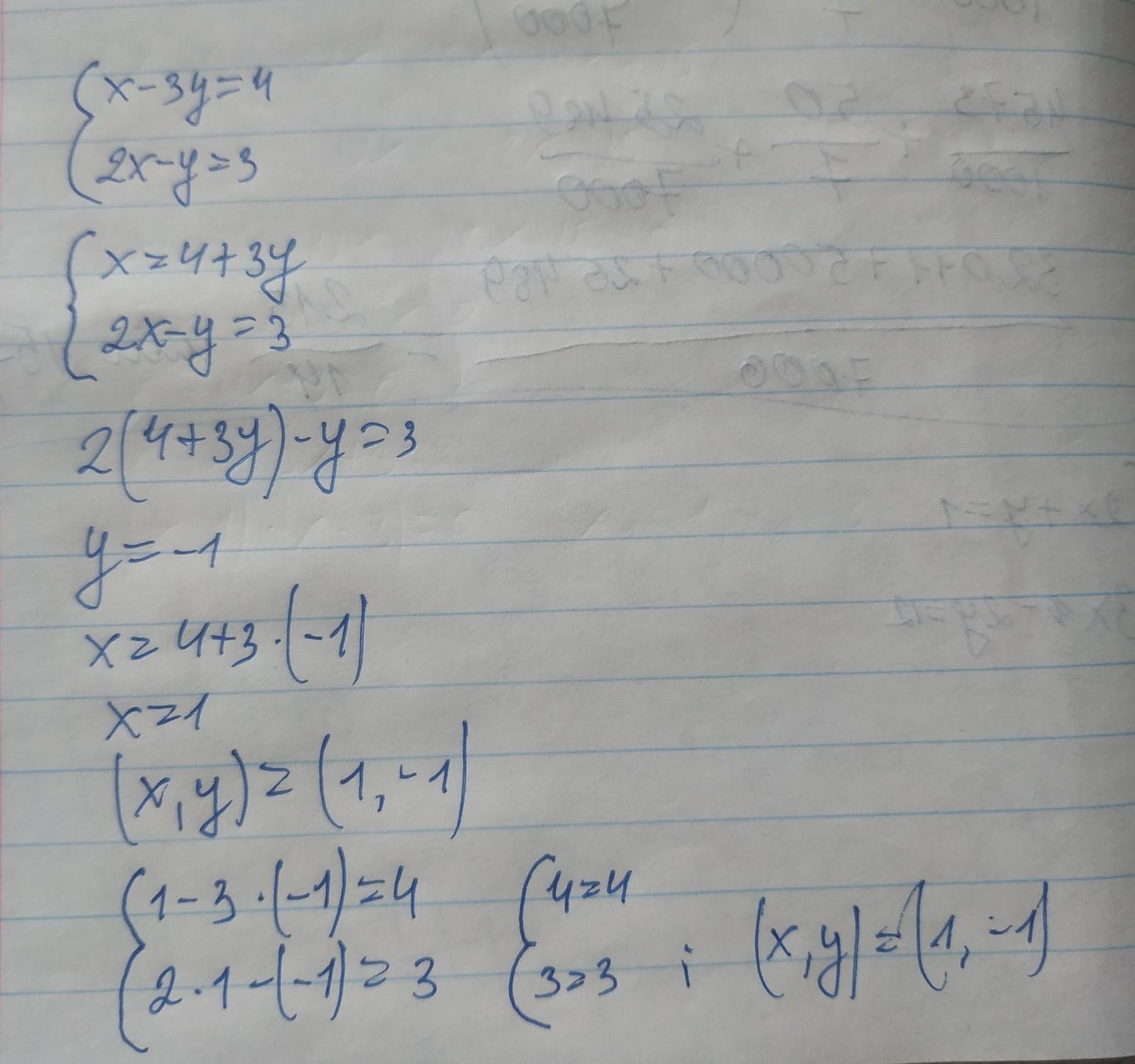 Выразив из первого уравнения переменную «х», решите систему линейных уравнений способом подстановки: