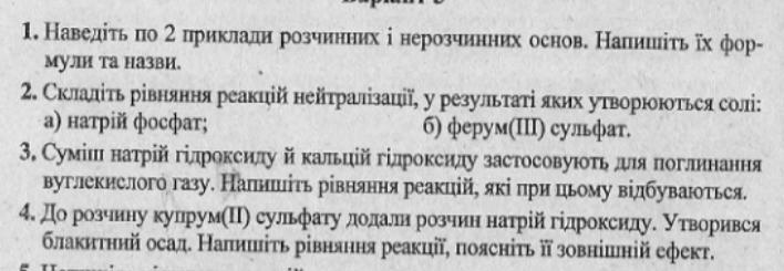 1.Нерозчинна основа Cr(OH)3,Cu(OH)2