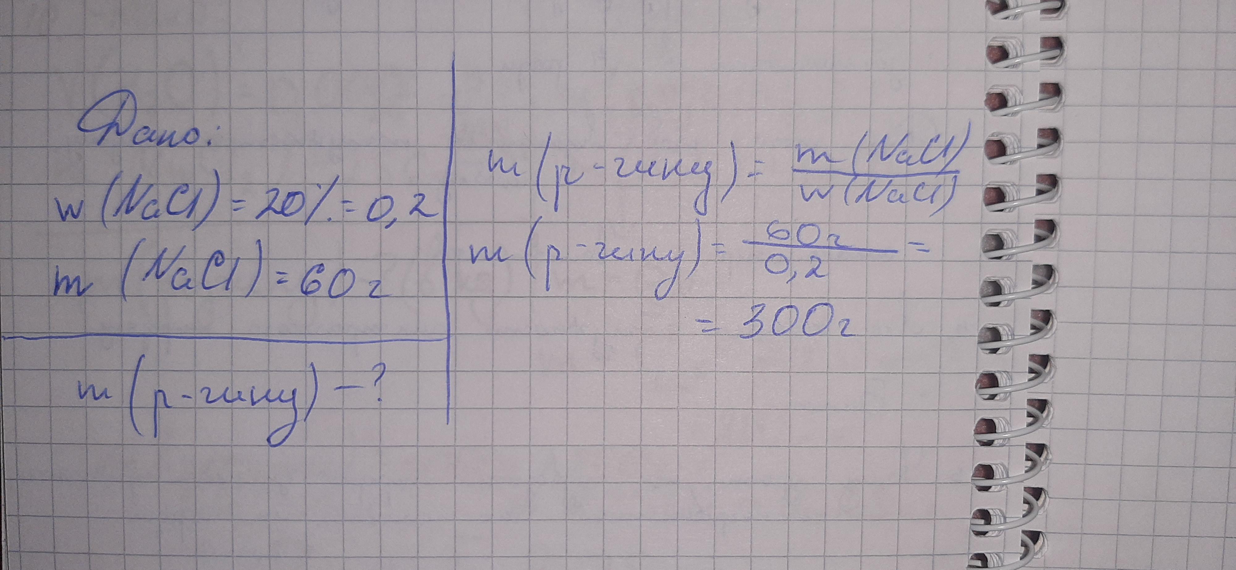4. Обчисліть масу розчину натрій хлориду з масовою часткою 20 % NaCl, у якому міститься 60 г натрій хлориду.