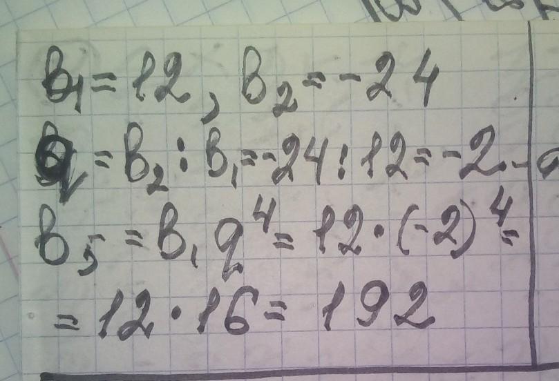 Знайдіть знаменник і 5-й член геометричної прогресії ; 12 ,-24 , ... .​