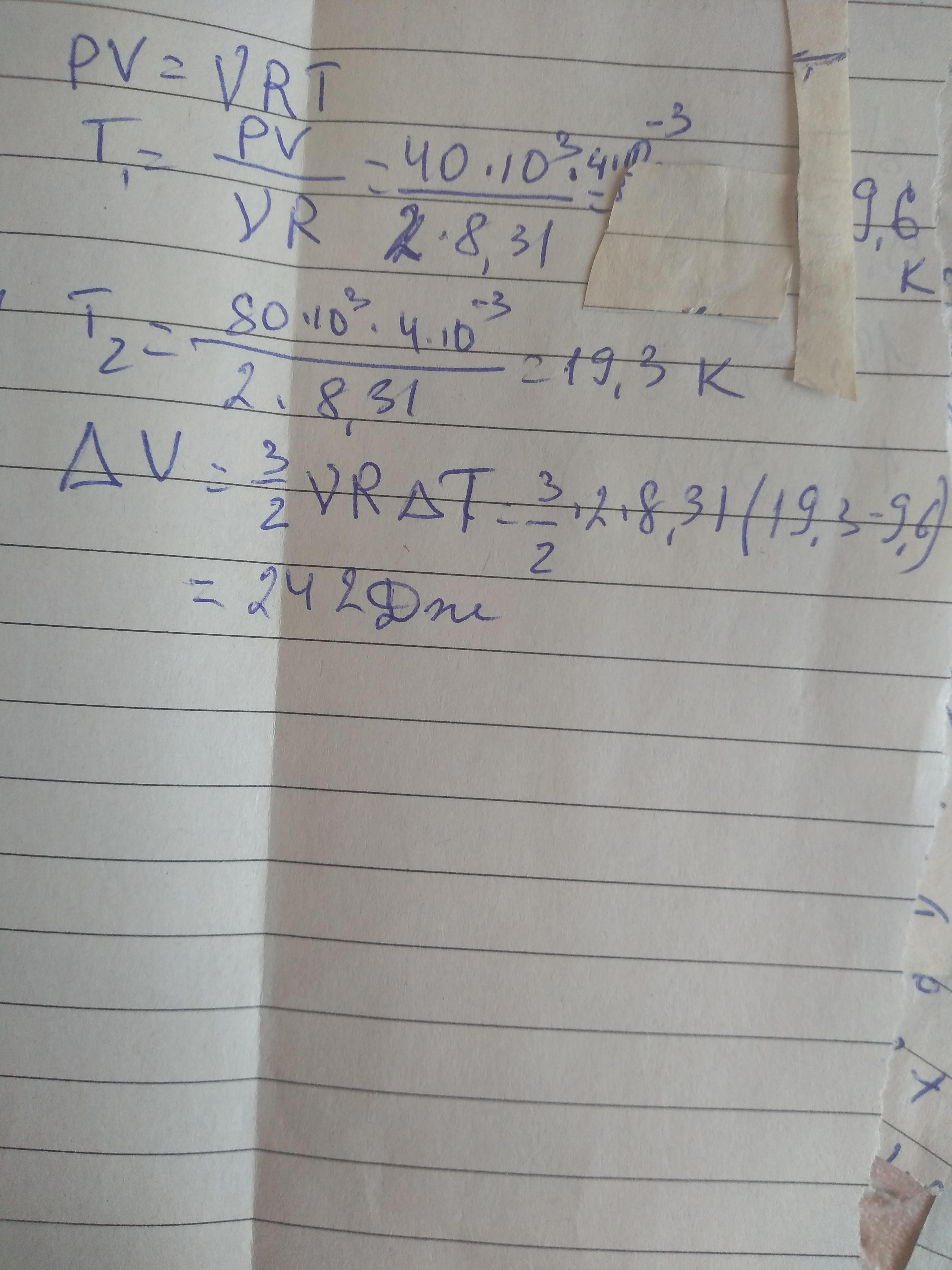 два моля идеального одноатомного газу ізохорно нагрівають в циліндрі об'ємом 4 л. Як при цьому змінилися внутрішня енергія і температура газу, якщо тиск збільшився від 40 кПа до 80 кПа
