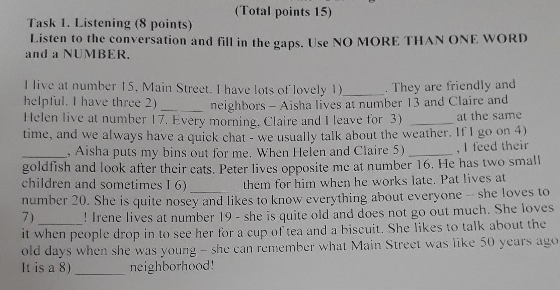 1Neighbors 2good house 3no in home 4play wtih 5help her mom
