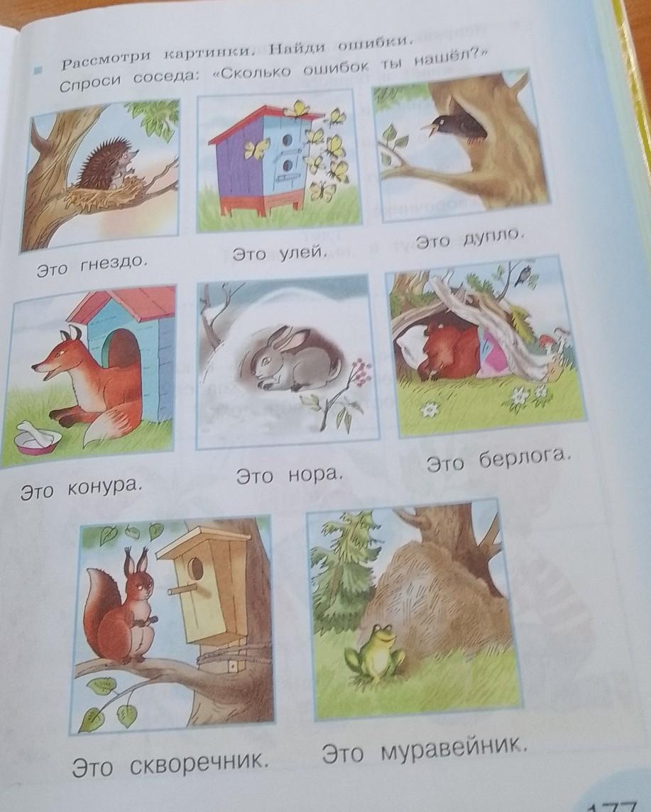 Рассмотри картинки. Найди ошибки. Спроси соседа: «Сколько ошибок ты нашёл?» 3 as Это улей. Это дупло. Это гнездо. к Это Нора. Это берлога. Это конура. Это скворечник. Это муравейник. Вот посмотрите как это делать?