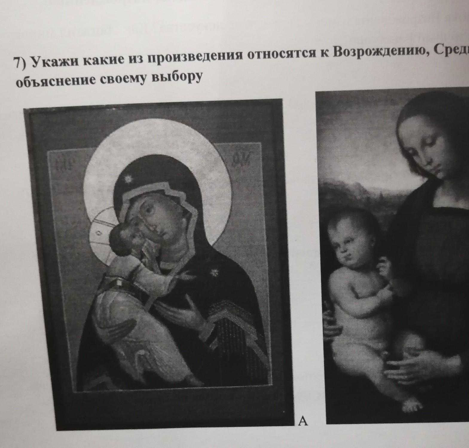 7) Укажи какие из произведения относятся к Возрождению, Средним века, дай объяснение своему выбору Б A