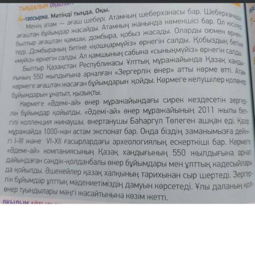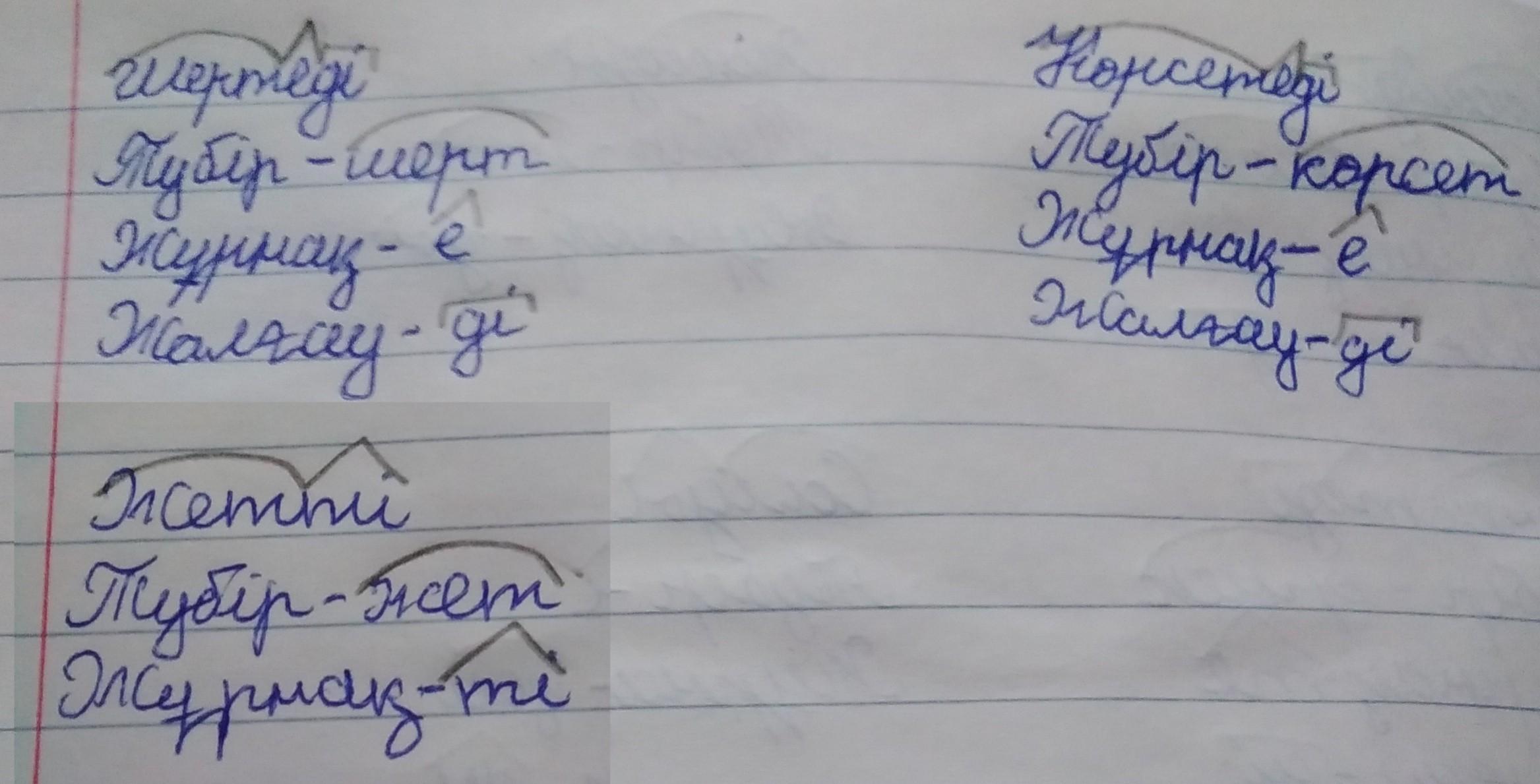 7-тапсырма. Мәтіннен етістіктерді тауып, жасалу жолдарын айт. Түбірі мен журнағын ажыратып жаз.