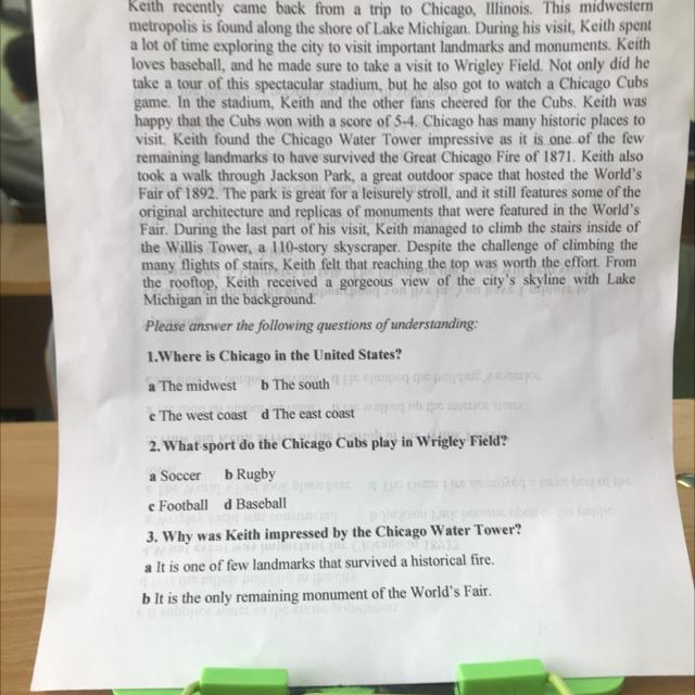 metropolis is found along the shore of Lake Michigan. During his visit, Keith spent