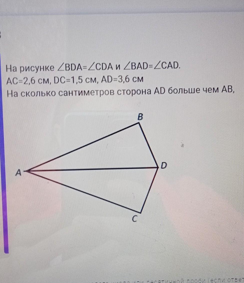 Треугольники ADB = ADC по стороне(AD) и двум прилежащим к ней уграм( BDA = CDA) (BAD = CAD)