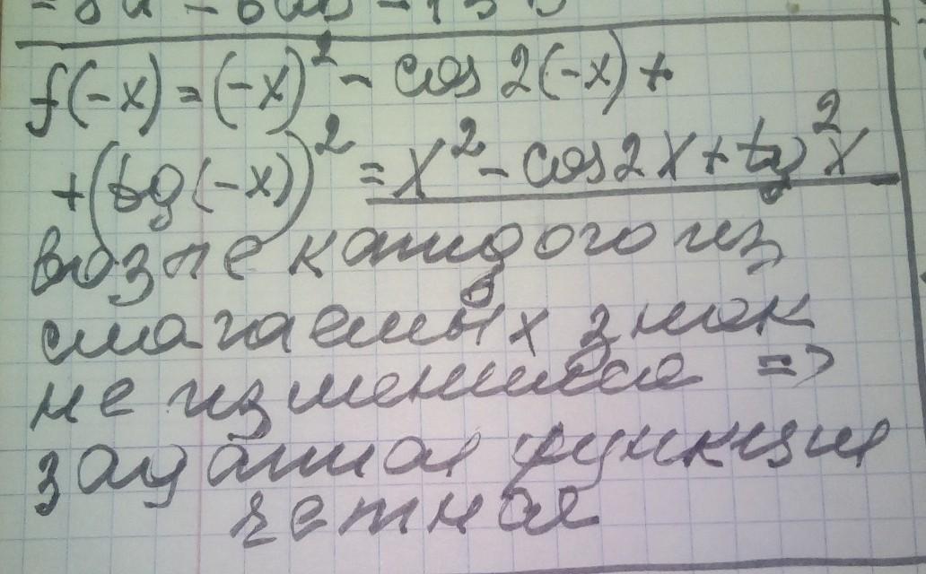 Визначте парність (непарність) функції f(x) = х² - cos 2x + tg² х.