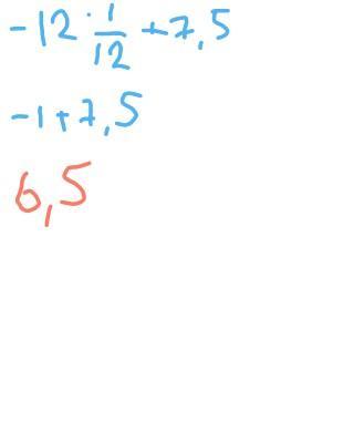 -12•(3/4-2/3)+7,5 = -12 * 1/12 + 7,5 = -1 + 7,5 = 6,5