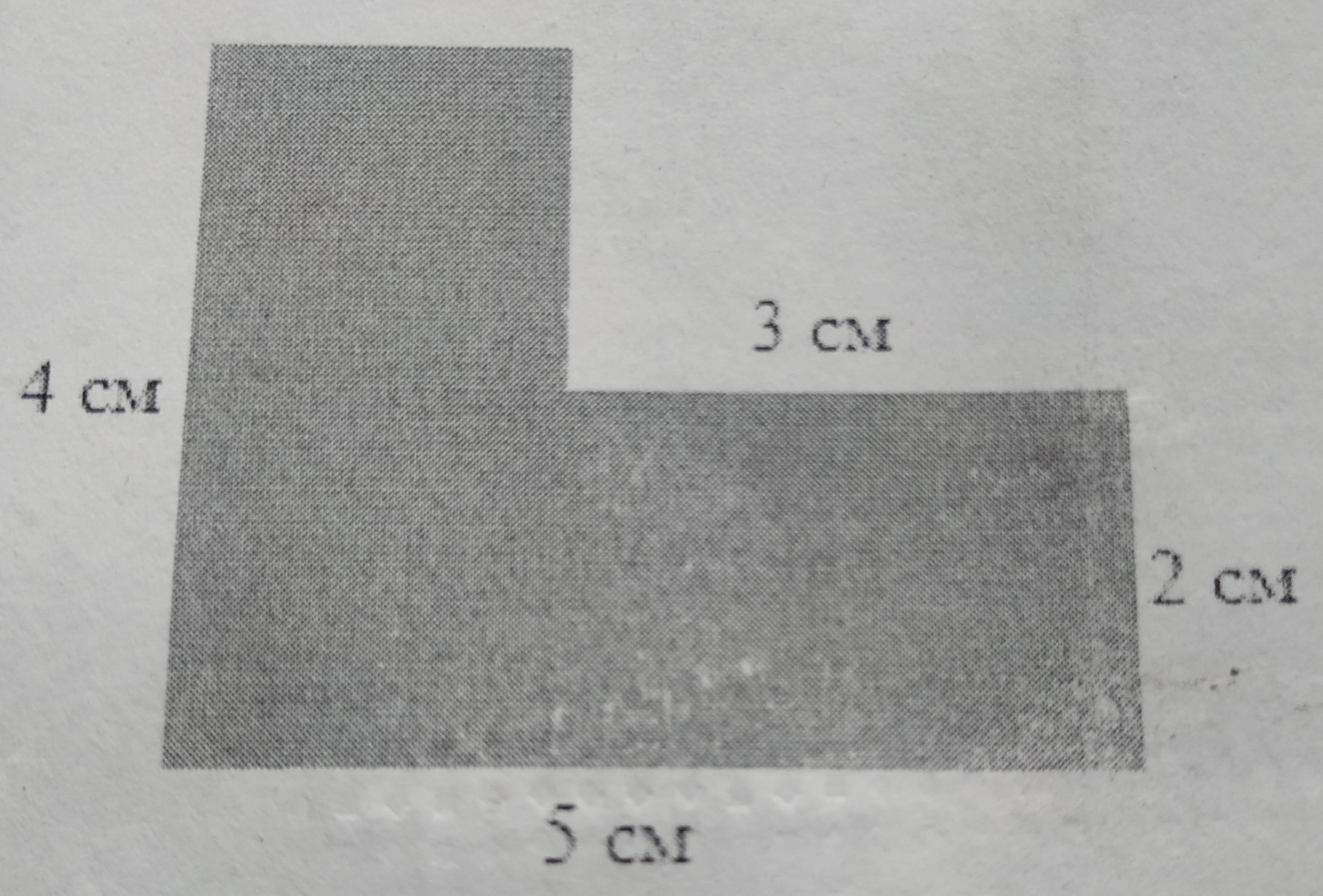 Разделим фигуру на две части, 1-ая часть: 4 и 3 см и 2-ая 5 и 2 см