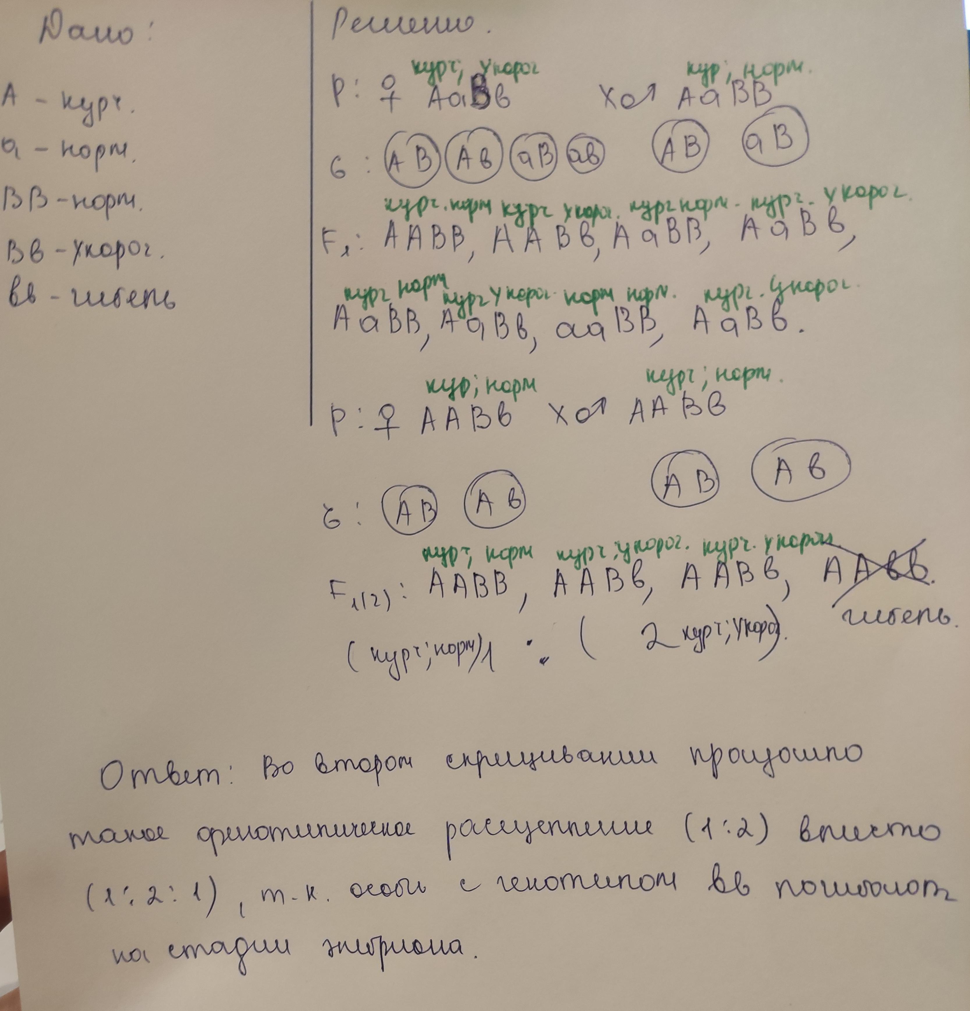укороченными ногами и гомозиготного петуха с курчавым оперением и укороченными ногами в потомстве получилось фенотипическое