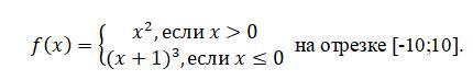 Вводите например в столбце B значения икс (числа от -10 до 10). В следующем столбце (C) напротив чисел пишите формулу =ЕСЛИ(X>0;X^2;(X+1)^3) Но только вместо X нужно указать ссылку на соседнюю ячейку со значением икс. Формулу нужно ввести один раз, а затем скопировать эту ячейку и вставить в остальные, напротив значений икс. Дальше надо добавить точечную диаграмму XY (график), в диалоге укажите диапазоны значений икс и значений игрек (это там, где наши формулы).
