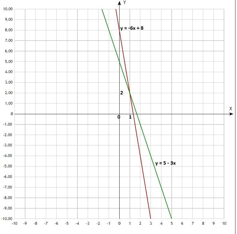 у = 5 - 3х; у = -6х + 8;