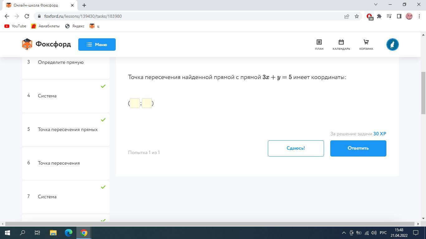 2) Найти координаты точки пересечения графика найденной прямой с прямой 3х + у = 5;