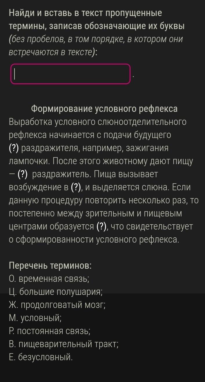 Выработка условного слюноотделительного рефлекса начинается с подачи будущего условного раздражителя, например зажигания лампочки. После этого животному дают пищу — безусловный раздражитель. Пища вызывает возбуждение в продолговатом мозге, и выделяется слюна. Если данную процедуру повторить несколько раз, то постепенно между зрительным и пищевым центрами образуется временная связь, что свидетельствует о сформированности условного рефлекса.