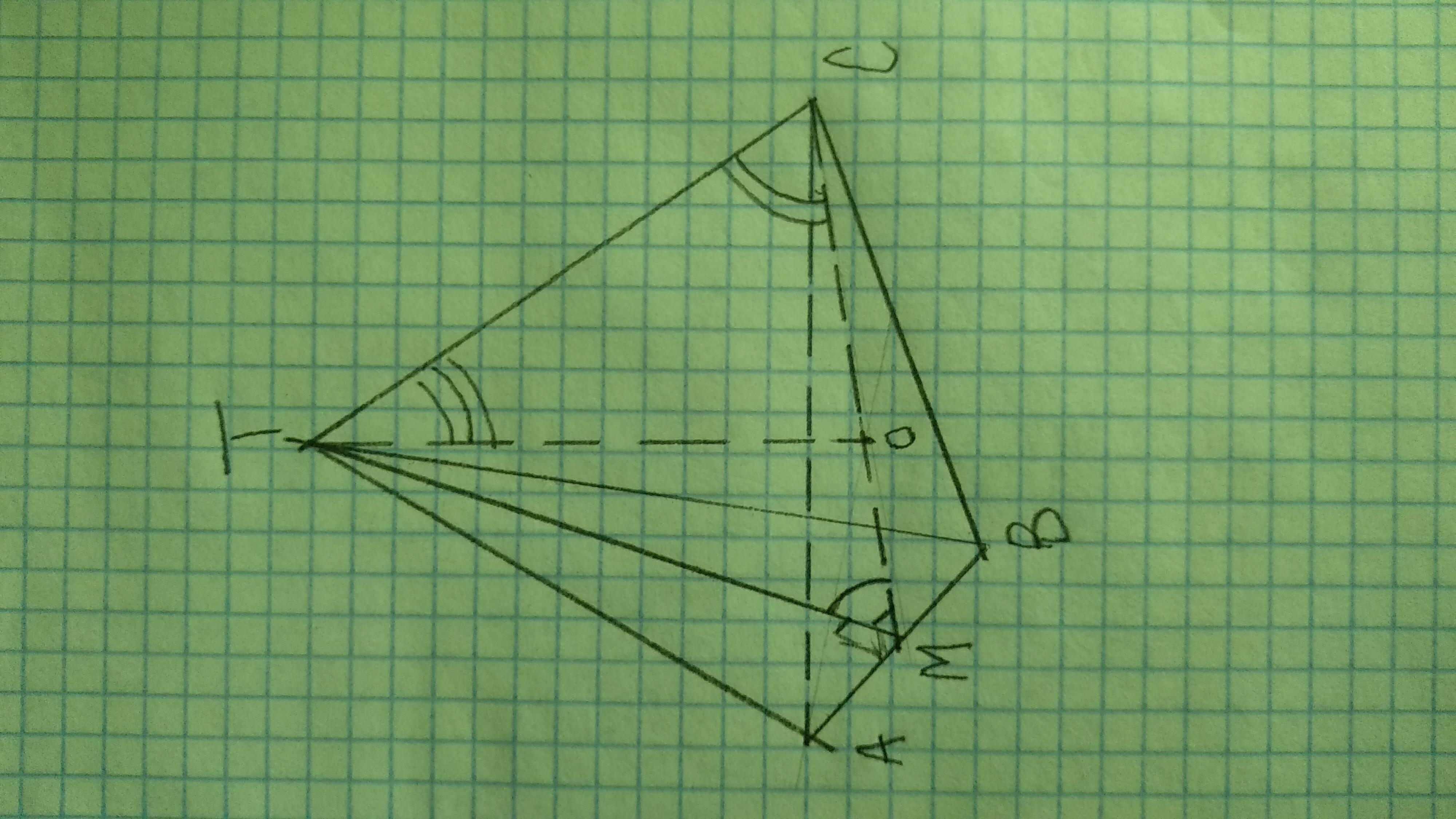 9) угол между боковой гранью и основанием ∠ ТМО;