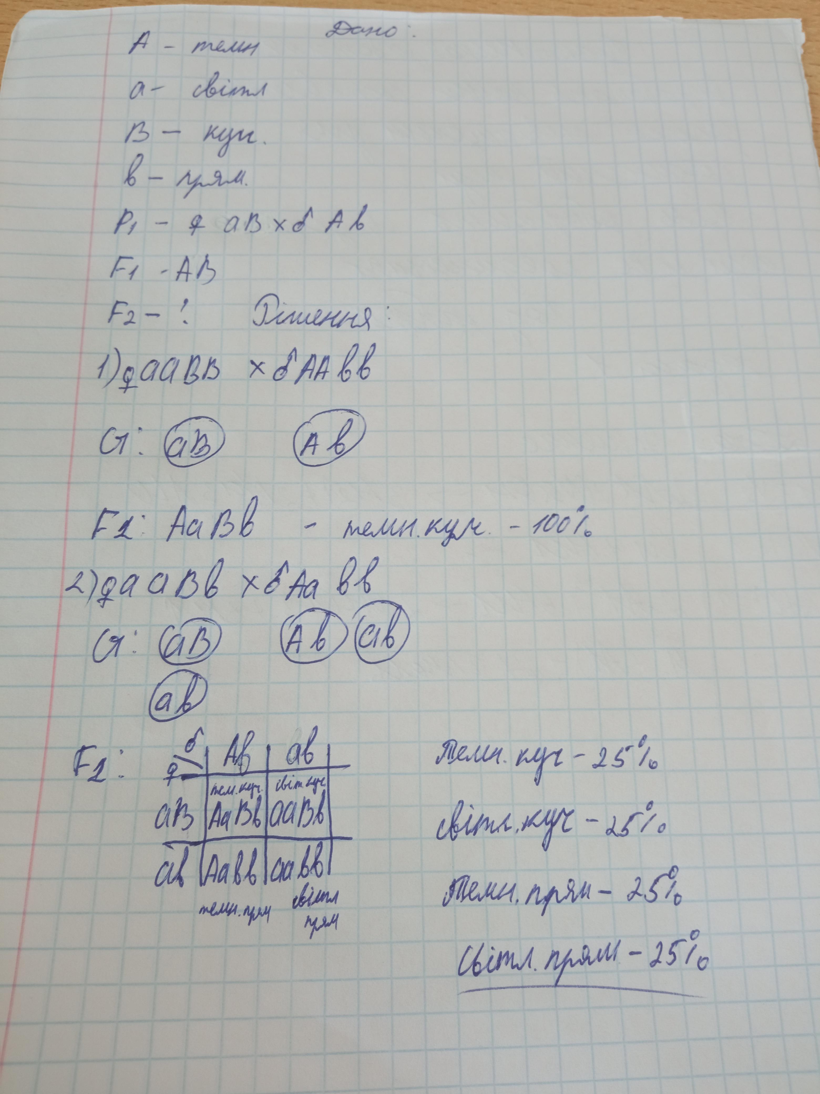 Чоловік з темним прямим волоссям одружився із жінкою зі світлим кучерявим волоссям. У них народилися троє дітей і всі з темним і кучерявим волоссям. Чи може народитися у цій родині дитина зі світлим і прямим волоссям? записати у вигляді задачі