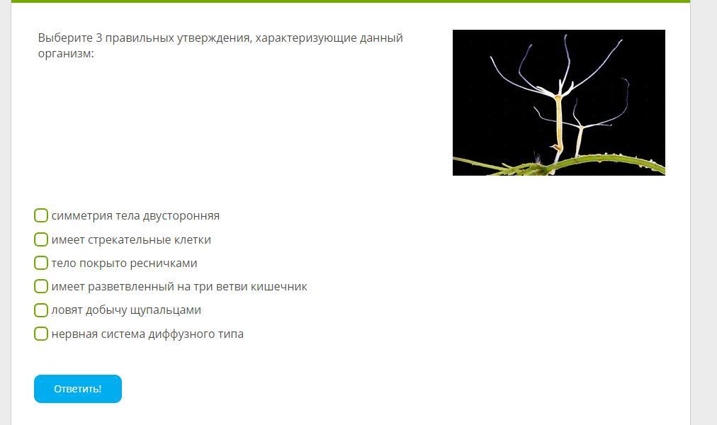 Это гидра. Она имеет стрекательные клетки, ловят добычу щупальцами, нервная система диффузного типа