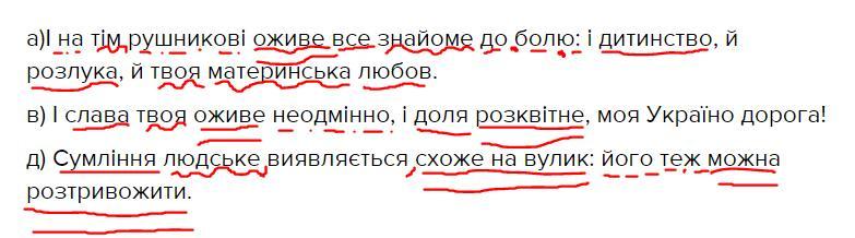 підкреслити головні і другорядні члени речення: а)І на тім рушникові оживе все знайоме до болю і дитинство й розлука й твоя материнська любов. в) І слава твоя оживе неодмінно і доля розквітне моя Україно дорога! д) Сумління людське виявляється схоже на вулик його теж можна розтривожити.