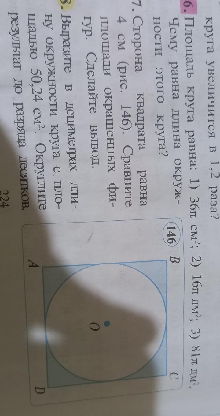 4) 16-12,56=3,44см2 - площадь квадрата больше площади вписаной в кварат
