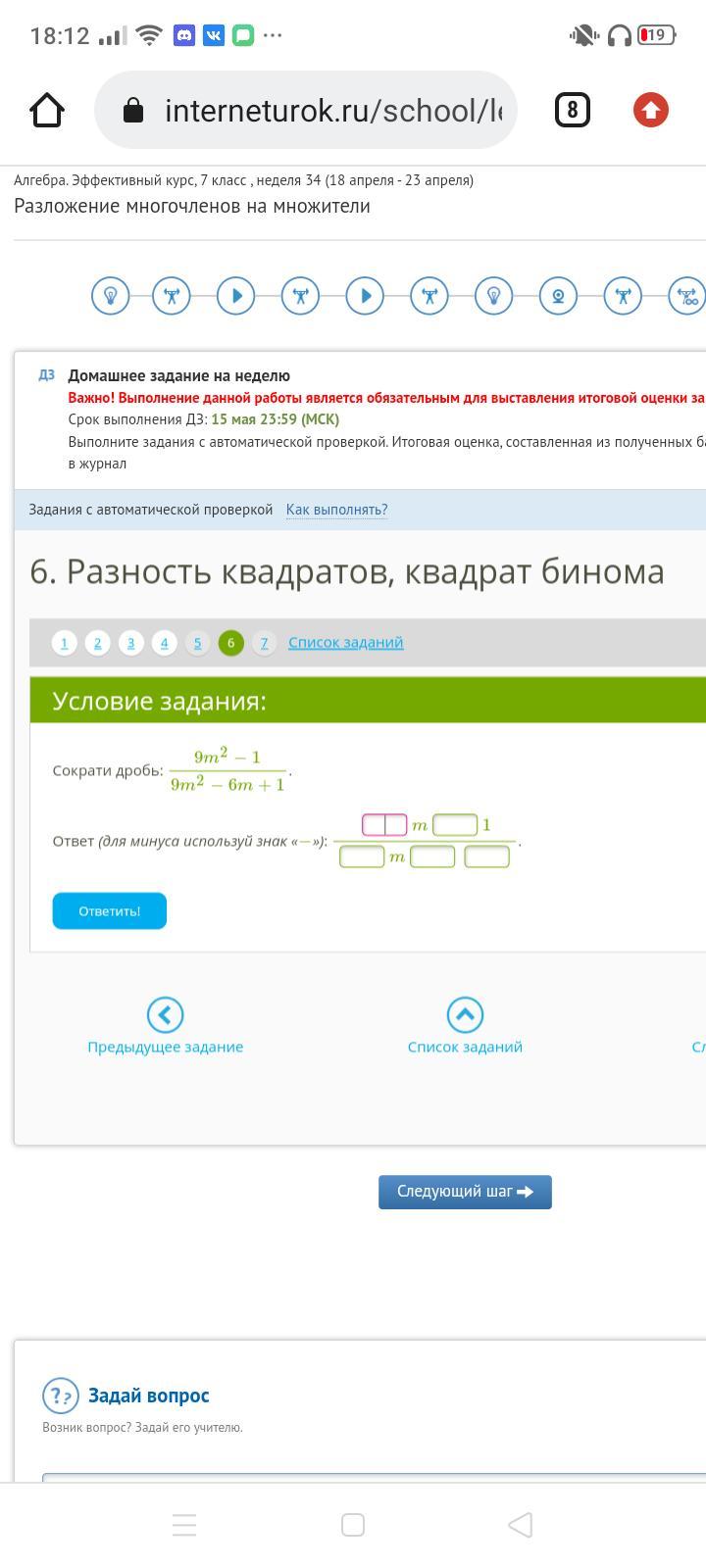 \frac{9m {}^{2} - 1 }{9m {}^{2} - 6m + 1} = \frac{(3m - 1) \times (3m + 1)}{(3m - 1) {}^{2} } = \frac{3m + 1}{3m - 1}9m2−6m+19m2−1=(3m−1)2(3m−1)×(3m+1)=3m−13m+1