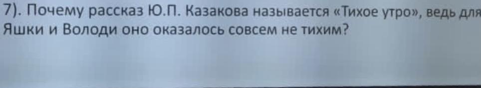В самом названии рассказа Юрия Павловича Казакова «Тихое утро» запечатлено одно из явлений природы. Действительно, все действие произведения происходит ранним летним утром. Но такое название дано писателем не для того, чтобы точно определить время действия. Тишина утра позволяет Ю. Казакову увидеть красоту природы, а также выделяет кульминационное событие, произошедшее с главными героями рассказа