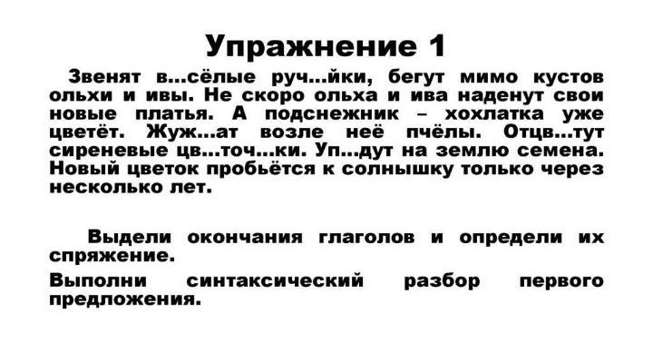 Звенят весёлые(Весело) ручейки(Ручей), бегут мимо кустов ольхи и ивы. Не скоро ольха и ива наденут свои новые платья. А подснежник - хохлатка уже цветёт. Жужжат( Словарное слово) возле неё пчелы. Отцветут(Цвет) сиреневые цветочки(Цвет, чк/чн пишется без ь). Упадут(Падать) на землю семена. Новый цветок пробьётся к солнышку только через несколько лет.