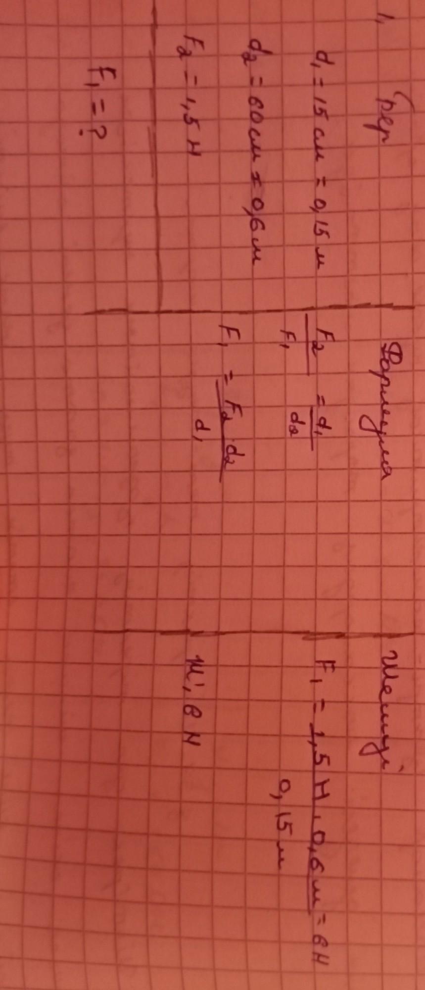 1,5 Н. Үлкен иінге түсетін күштің шама-