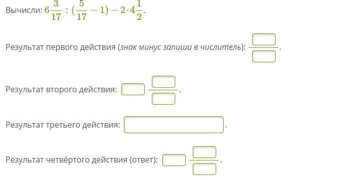 \displaystyle 6\frac{3}{17}:(\frac{5}{17}-1)-2*4\frac{1}{2}=\frac{105}{17}:(-\frac{12}{17})-2*\frac{9}{2}=-\frac{105}{17}*\frac{17}{12}-9=-35*\frac{1}{4}-9=\\\\-\frac{35}{4}-9=-\frac{71}{4}