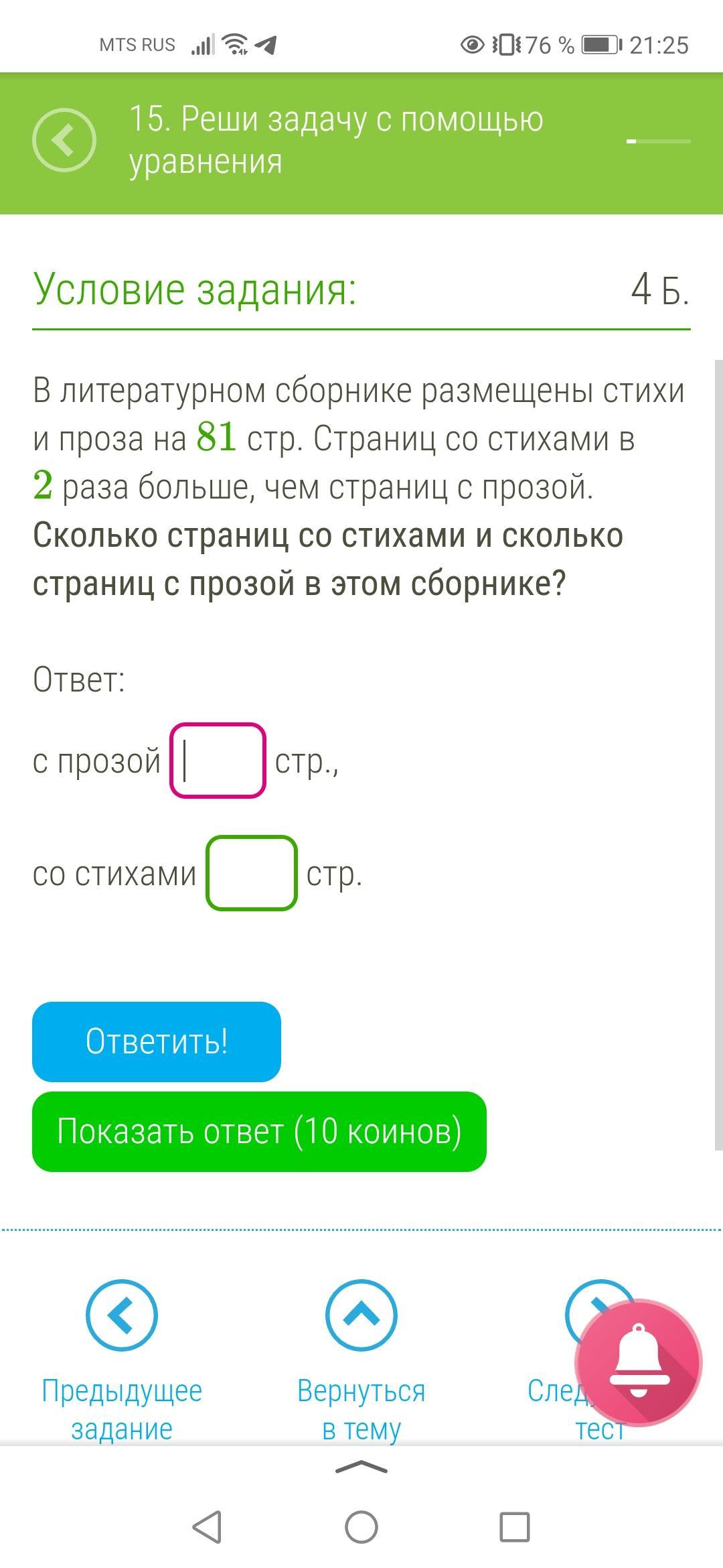 2) примем за 1 часть стр с прозой, тогда 1*2=2 части стр со стихами