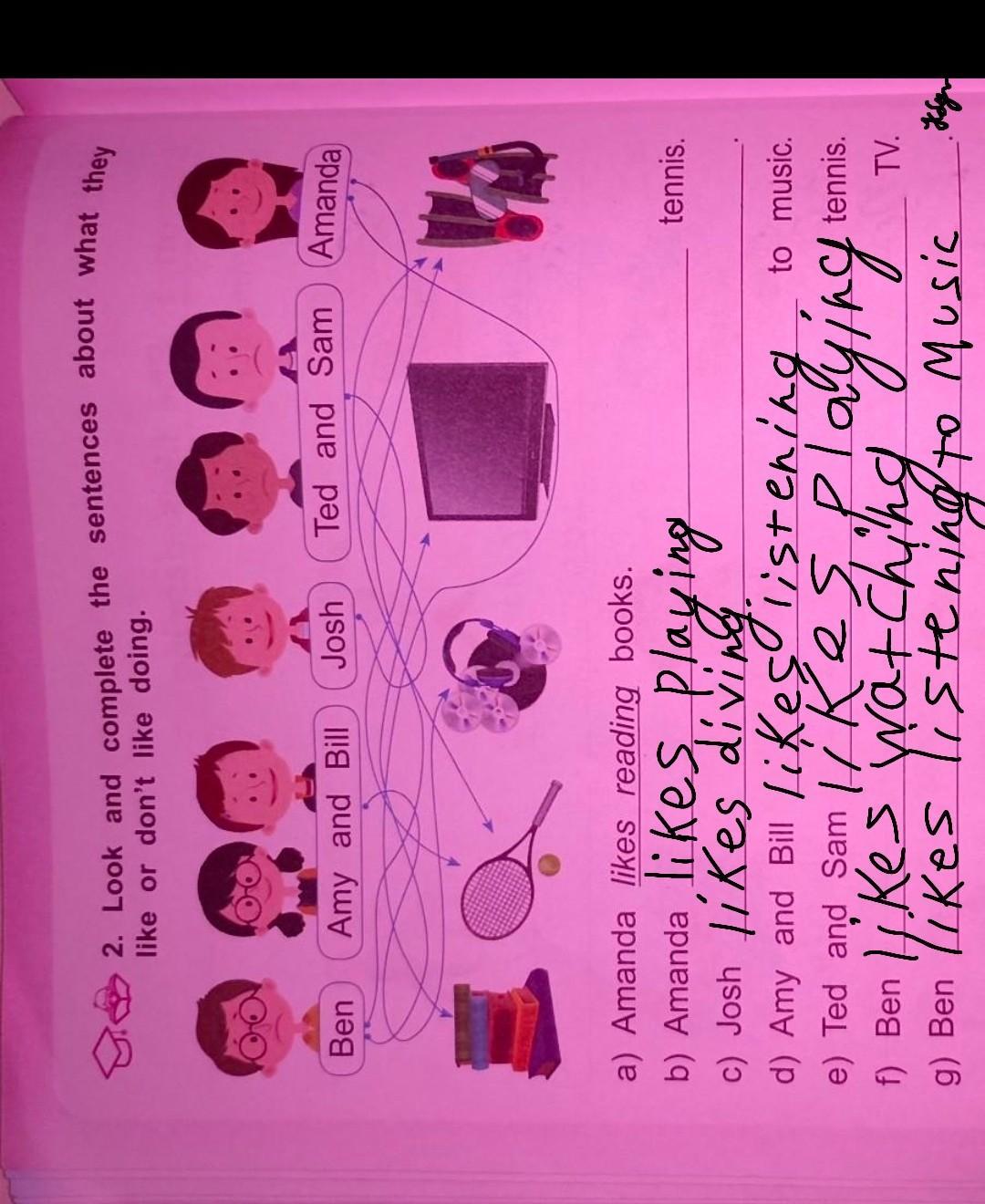 g) likes listening music