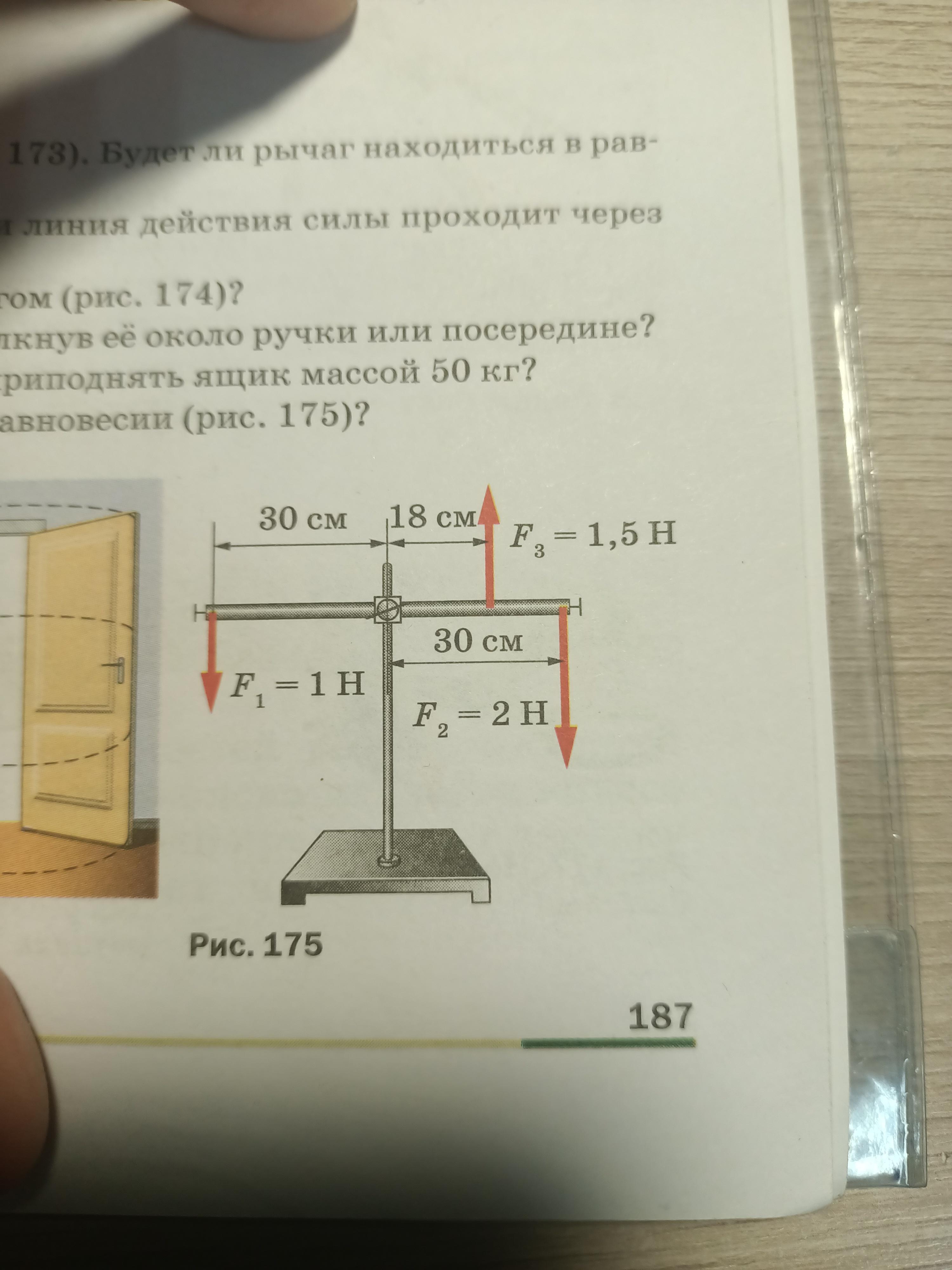 Будет ли рычаг находиться в равновесии?