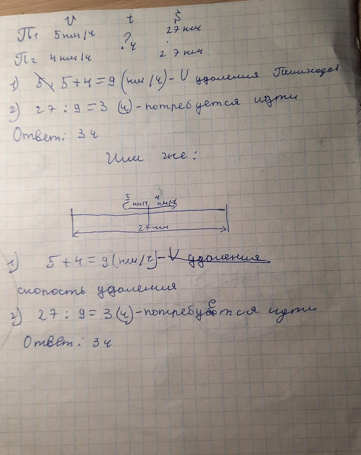 5+4=9 км/ч - V общ.