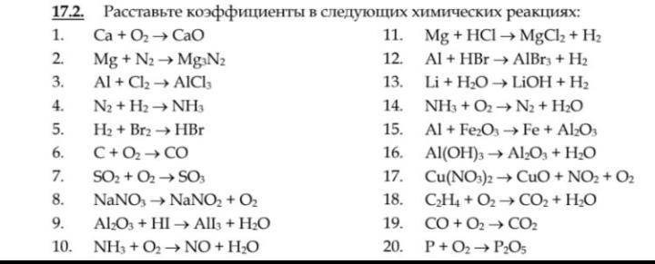Расставте коэффициенты в следующих химический реакциях. Решите хотябы 3,4 9. Прошу.☹