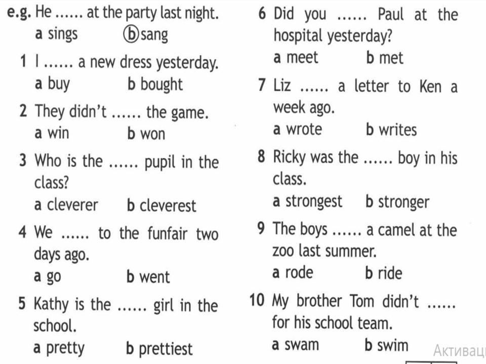 2.Выберите подходящий вариант и запишите готовые предложения в тетрадь полностью, например, 1. I bought a new dress yesterday.