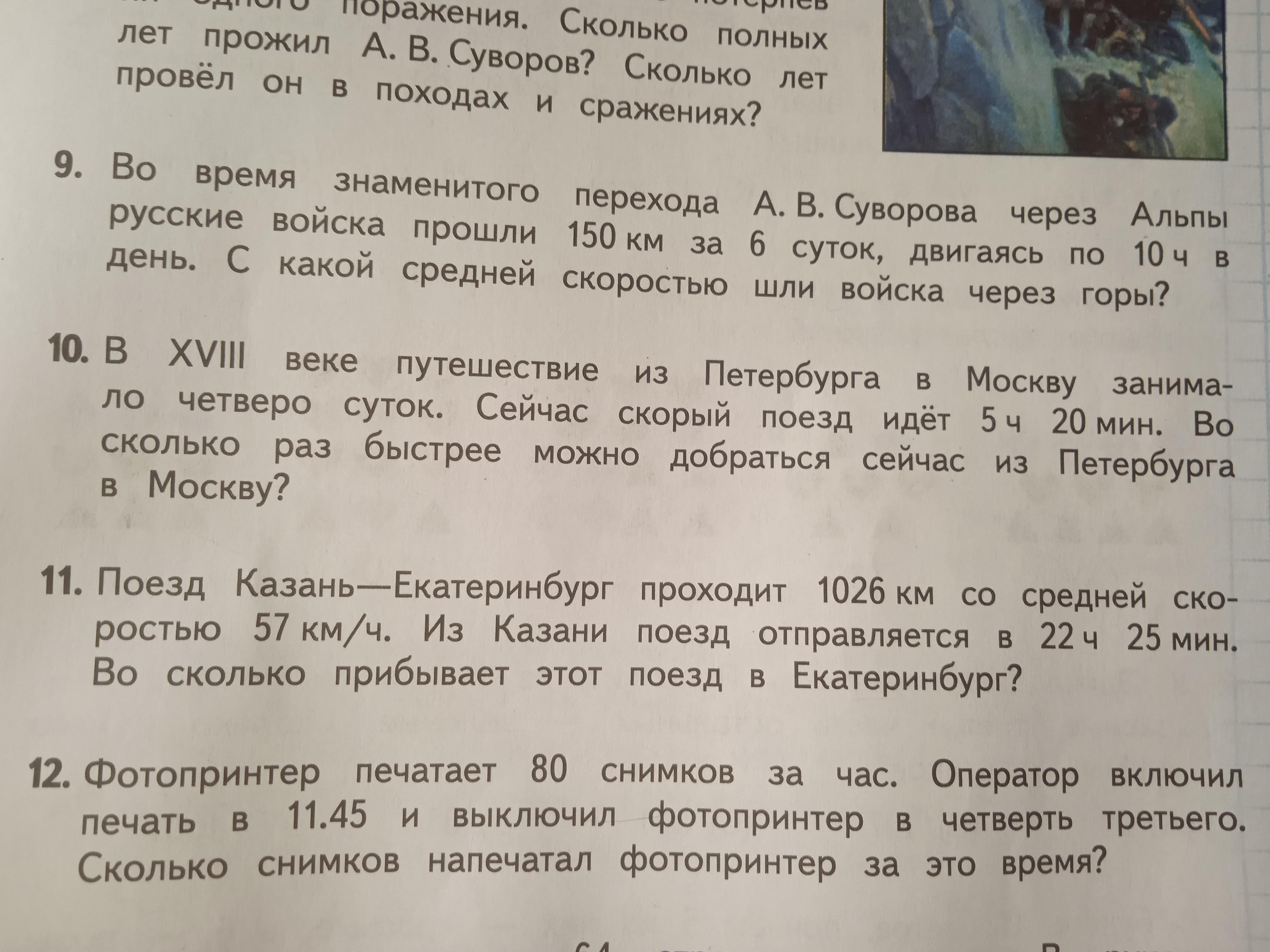 В 18 веке путишествие из Петербурга в Москву занимает четверо суток. Сейчас скорый поезд идёт 5ч.20 мин. Во сколько раз быстрее можно добраться сейчас из Петербурга в Москву?