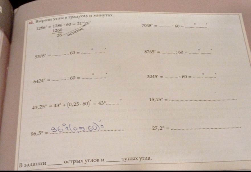 96,5° = ( 96 5/10 )° = 96°30' ; 27,2° = ( 27 2/10 )°= 27°+ 1/5 * 60 =27°12'.