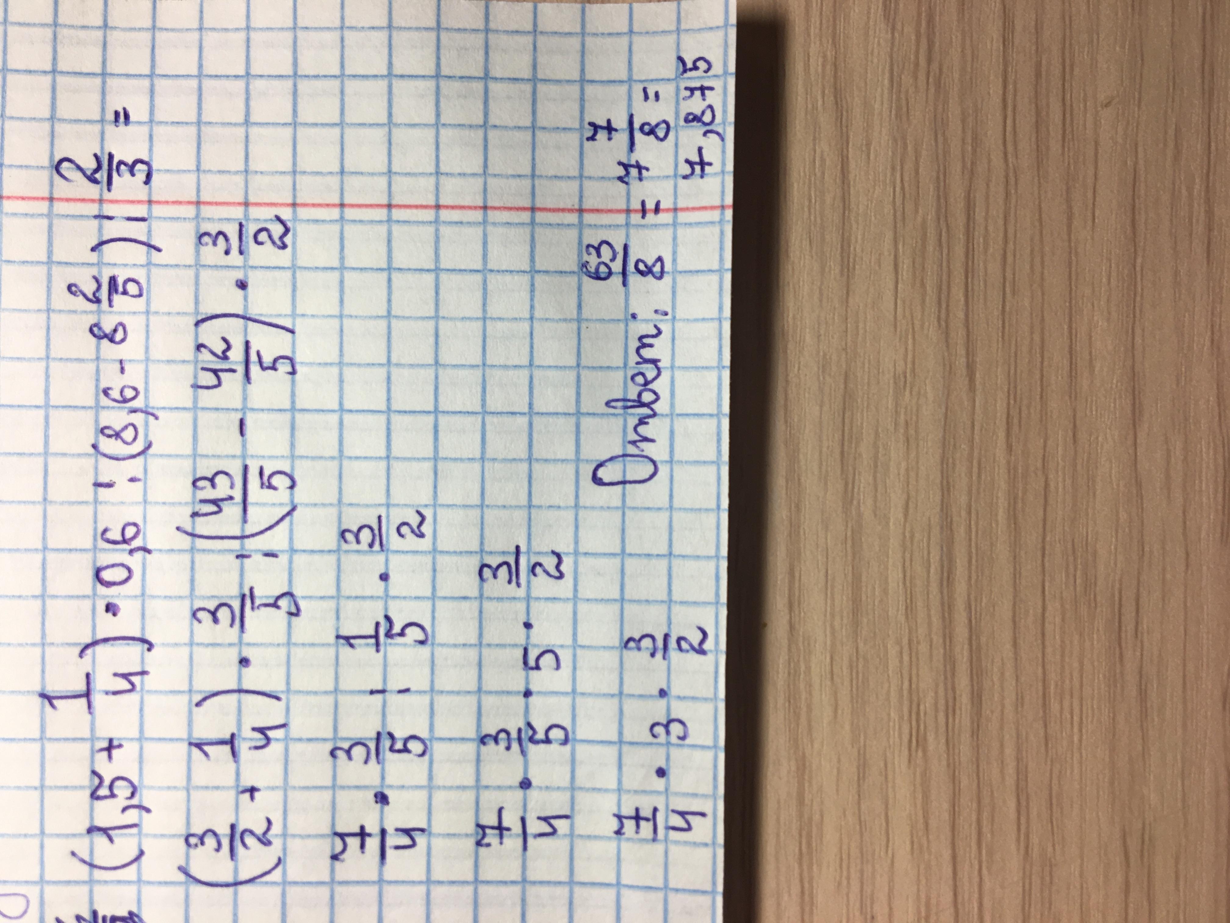 Ответ: 63/8 или 7 7/8 или 7,875 ( в зависимости от того в какой форме записи тебе нужен ответ )